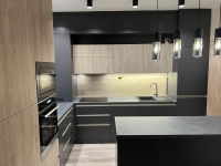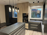 Konyhabútor antracitszürke fronttal, konyhaszigettel