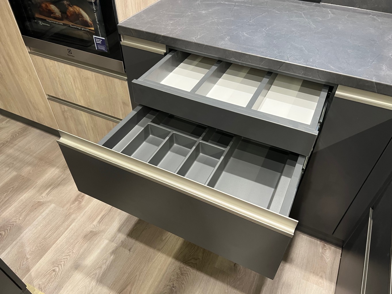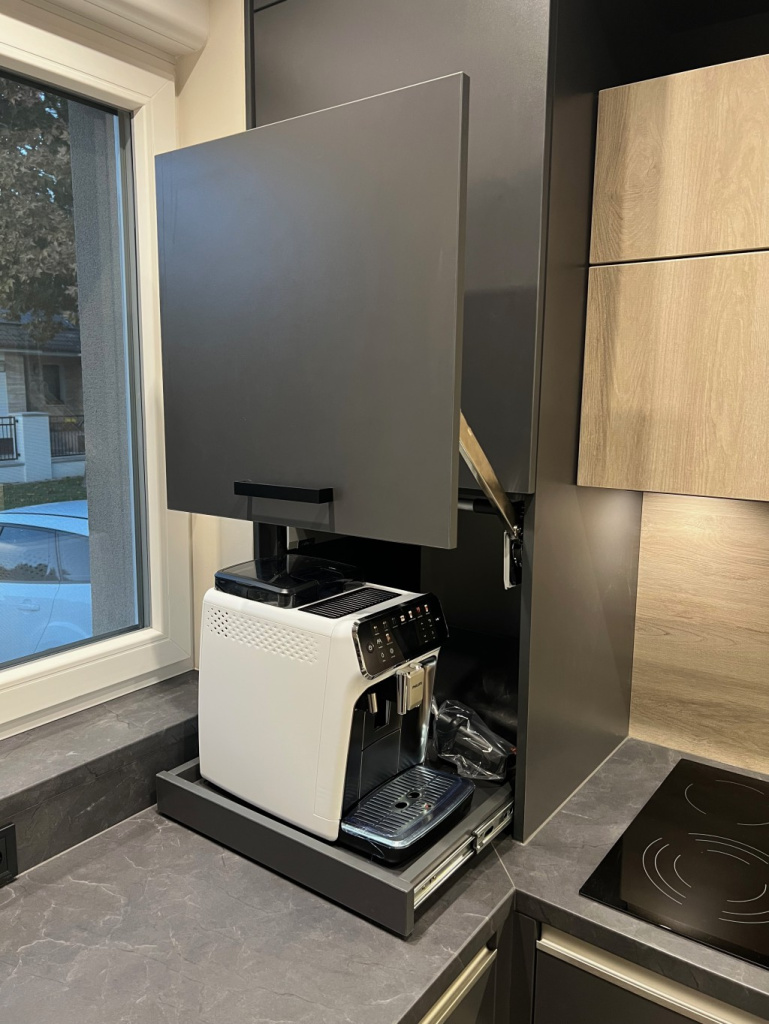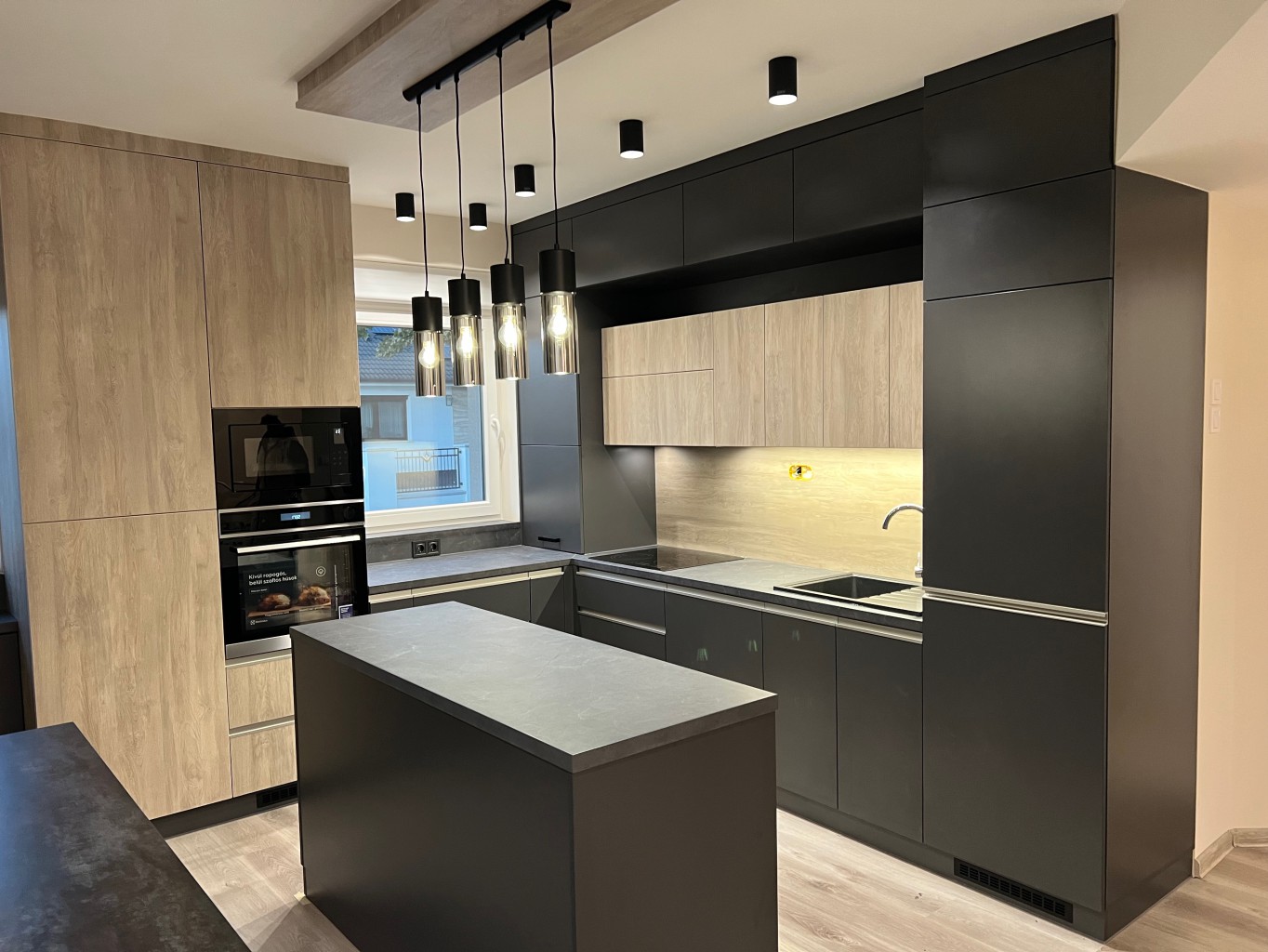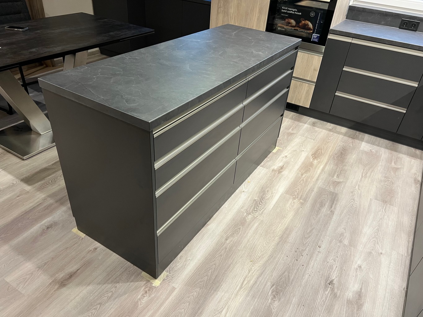 Konyhabútor antracitszürke fronttal, konyhaszigettel